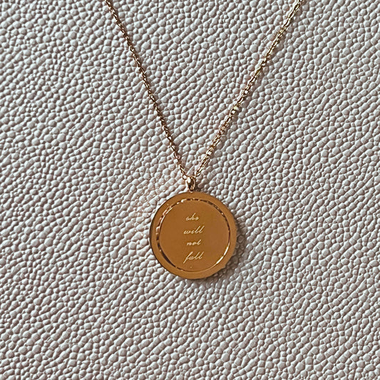 "God Is Within Her/She Will Not Fall" Spinning Disc Necklace